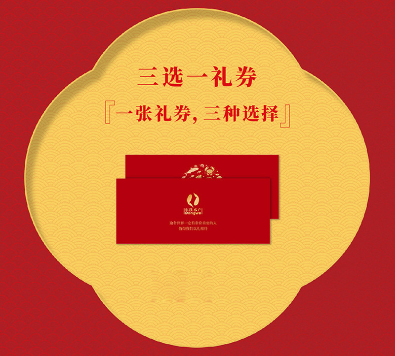 時(shí)隔一年,東沃再次推出“三選一禮券”,一張禮券,三種產(chǎn)品任選。可選產(chǎn)品涵蓋:國(guó)產(chǎn)海鮮、佛跳墻、遼刺參、大閘蟹(時(shí)令產(chǎn)品)、海鮮干貨。多樣化的產(chǎn)品選擇,讓送禮更顯價(jià)值。