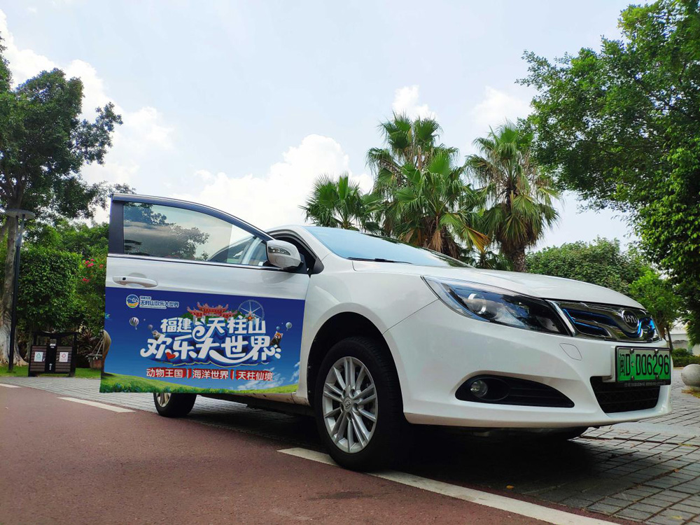 2021年6月福建天柱山歡樂(lè)大世界再次與天藝傳媒攜手,合作投放全城移動(dòng)式曝光的網(wǎng)約車(chē)車(chē)身媒體,200輛網(wǎng)約車(chē)同時(shí)閃耀上路,全城視線聚焦,即刻拉開(kāi)天柱山歡樂(lè)大世界2021年度的宣傳序幕。