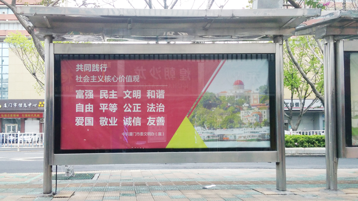 一般情況下,候車(chē)亭廣告使用單一的顏色作背景,文字采用與背景顏色反差較大的色彩,這樣既能襯托主體,又能令遠(yuǎn)處的人可以清楚地看到。