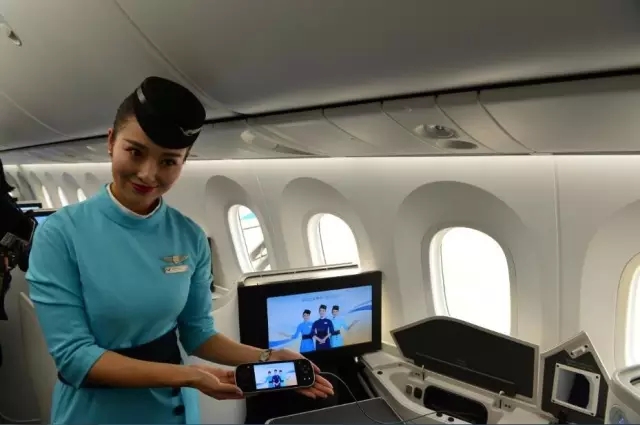 這架B787-9型飛機(jī)在客艙內(nèi)可實(shí)現(xiàn)空地互聯(lián),旅客在飛機(jī)進(jìn)入平飛狀態(tài)后,可利用電腦、iPad等設(shè)備連接客艙內(nèi)Wi-Fi信號,體驗(yàn)收發(fā)郵件、購物、微信等網(wǎng)絡(luò)服務(wù)。